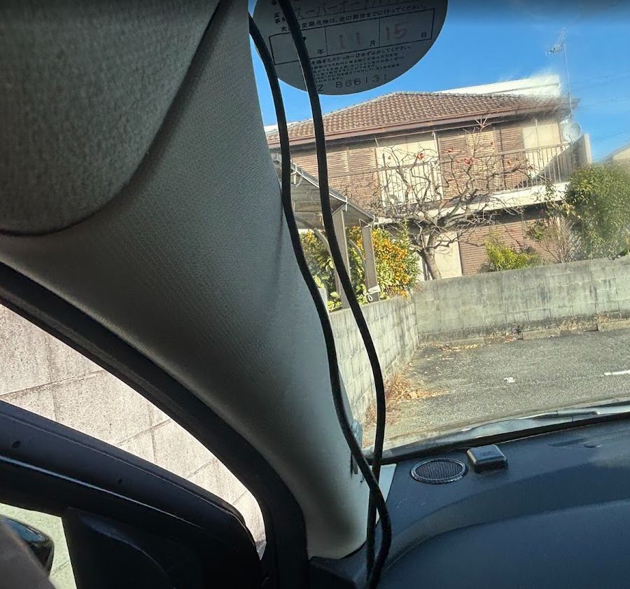 電源コードも天井の隙間の隙間とAピラーの隙間に配線を押し込んで