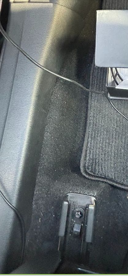 足元の樹脂カバーの隙間に配線を押し込んで隠していきます。